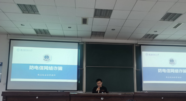 讲座中,周栋栋列举了本校学生遭遇电信网络诈骗的真实数据,通过一个个生动、鲜活的案例,耐心讲解了网络交友、刷单、裸聊等电信网络诈骗的主要形式。他强调,防范电信网络诈骗,首先要从思想上引起重视,杜绝贪念,不占小便宜;其次,要保护好自己的身份信息,谨防泄露;最后,遭遇诈骗不要惊慌,及时联系辅导员或保卫处,切勿进行转账操作。
