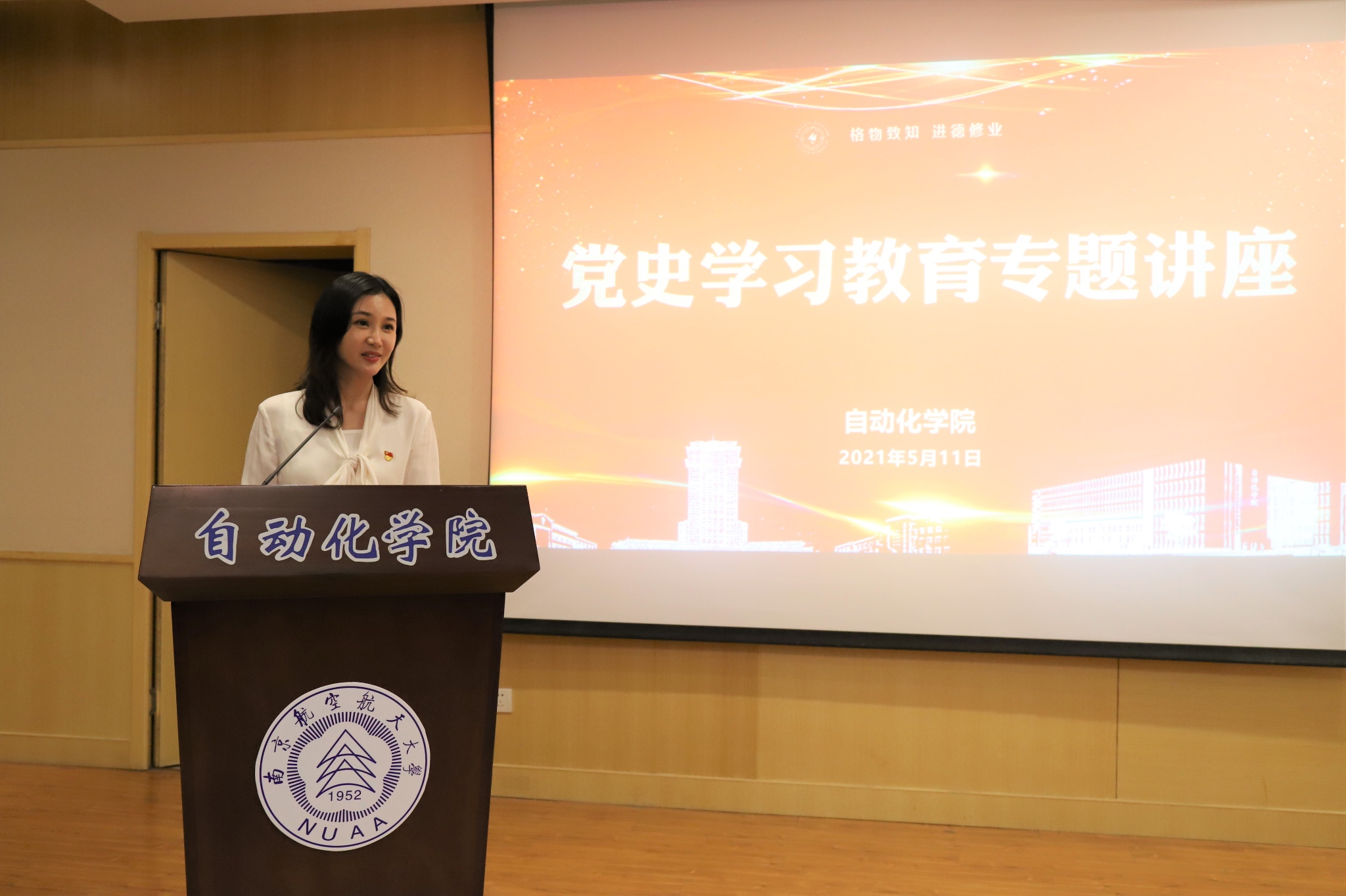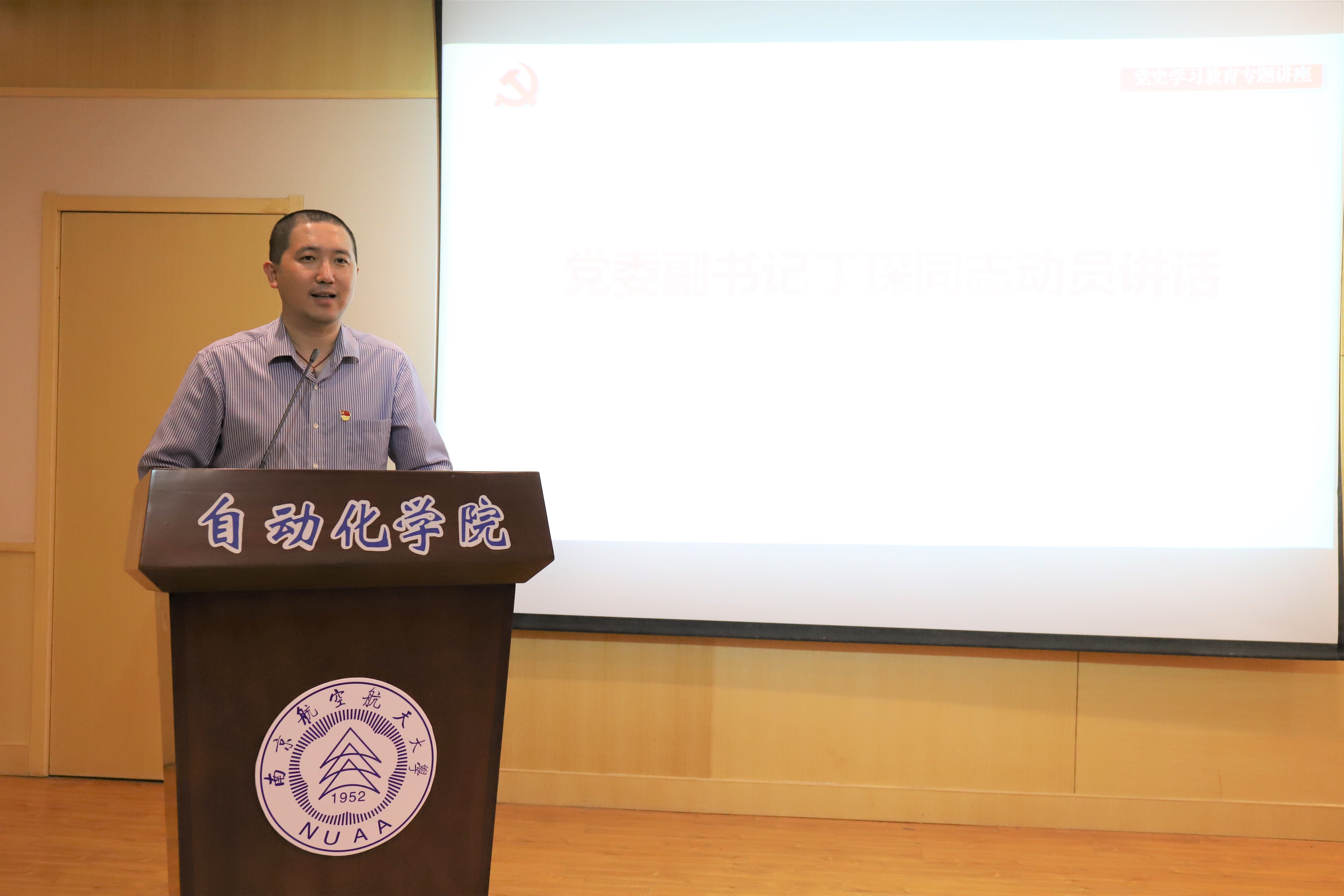 讲座伊始,丁琛做动员讲话,他指出,举办党史学习教育专题讲座正当其时,很有必要,无论是从现实情况还是未来发展来看,当代青年学子学党史都具有重要意义。知所从来,方明所去;心有所信,方能行远。他强调,青年学生学党史,就要在内心厚植爱国主义情怀,把爱国情、强国志、报国行自觉融入坚持和发展中国特色社会主义事业、建设社会主义现代化强国、实现中华民族伟大复兴的奋斗之中。
