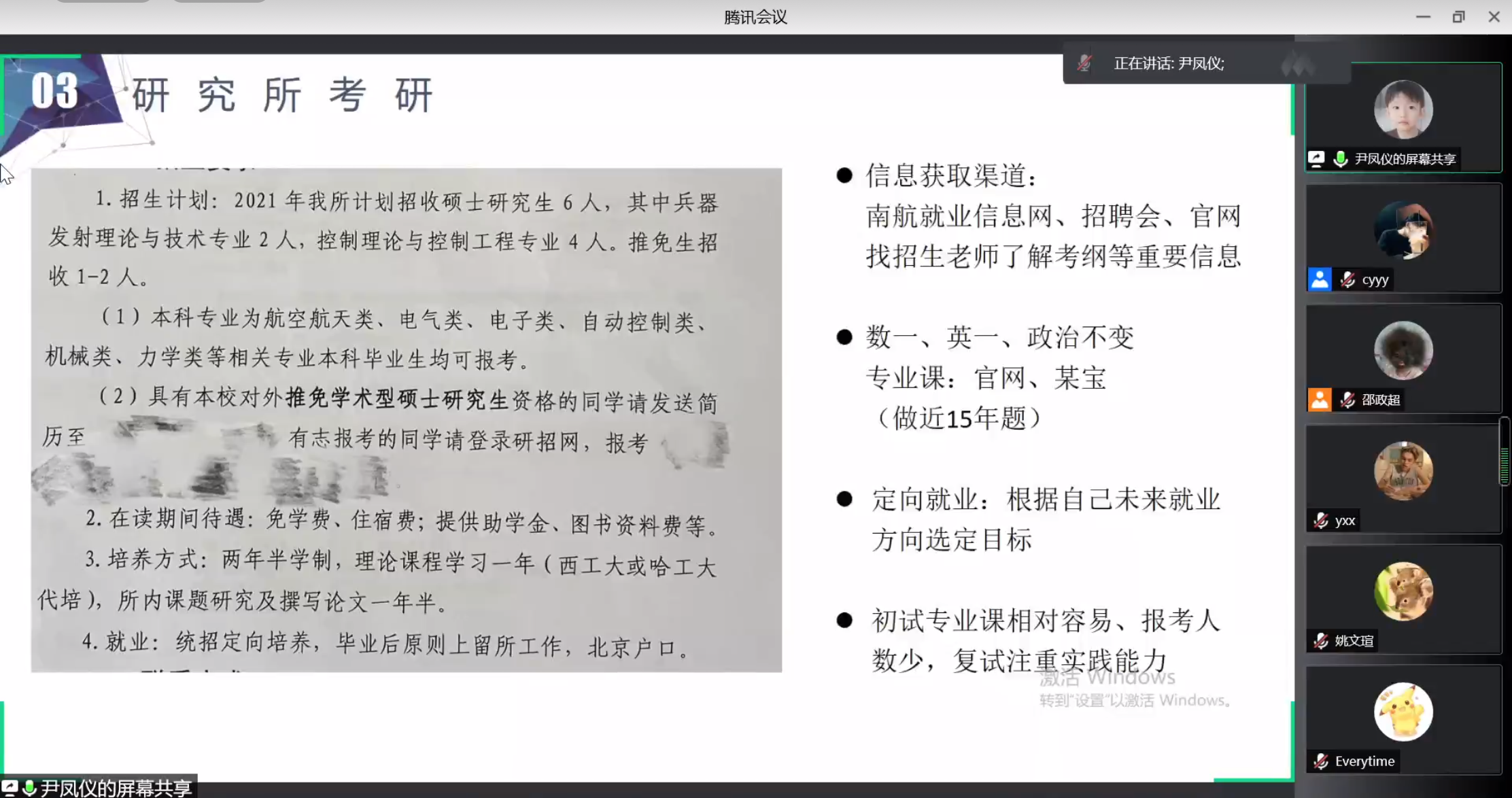 考研到研究所的尹凤仪在分享中提到:大部分同学考研目标都是大学,但是科研院所也不失为一个好选择,与大家分享了考研安排的同时也重点向大家介绍了研究所的培养方式,以及如何选择心仪的研究所,学姐的分享让即将面临考研的大三学生又多了一种选择。