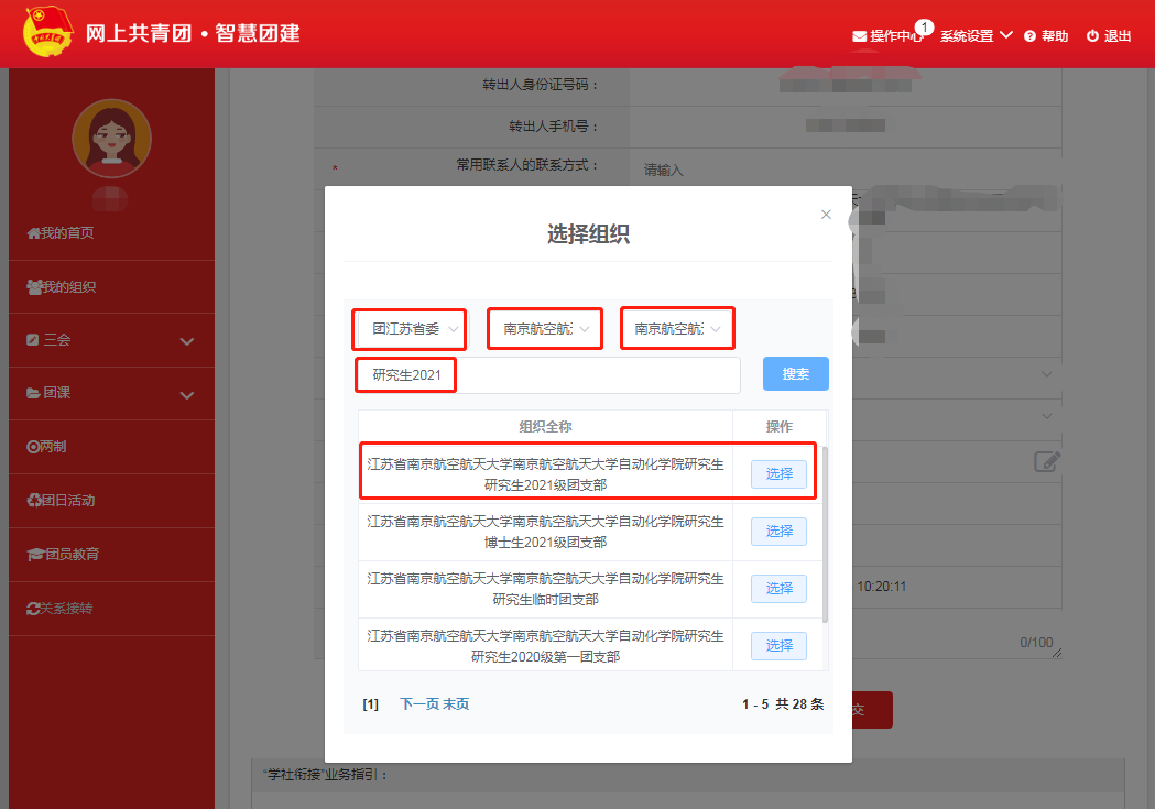 智慧团建信息转接:转入团支部名称:江苏省国产传媒 国产传媒 研究生2021级团支部。下附具体流程。