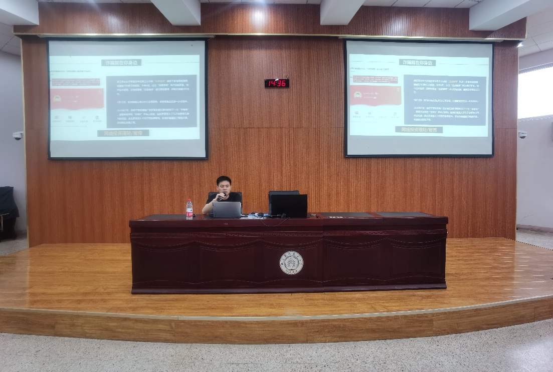 接着,周栋栋老师就电信网络诈骗的定义、形式及类型作了说明,并特别针对校园诈骗案情进行详细分析,重点列举了刷单、网络购物、冒充熟人、购物退款、网络贷款、交友诈骗、冒充客服、信用卡诈骗、网络投资、冒充公检法、冒充领导、网络预测彩票、网络购票这13种常见的诈骗案例,并结合本校学生遭遇电信网络诈骗的真实数据,耐心讲解了网络诈骗的危害以及导致被骗的心理活动,并向学生强调了网络诈骗防范措施及被骗后的处置方法。