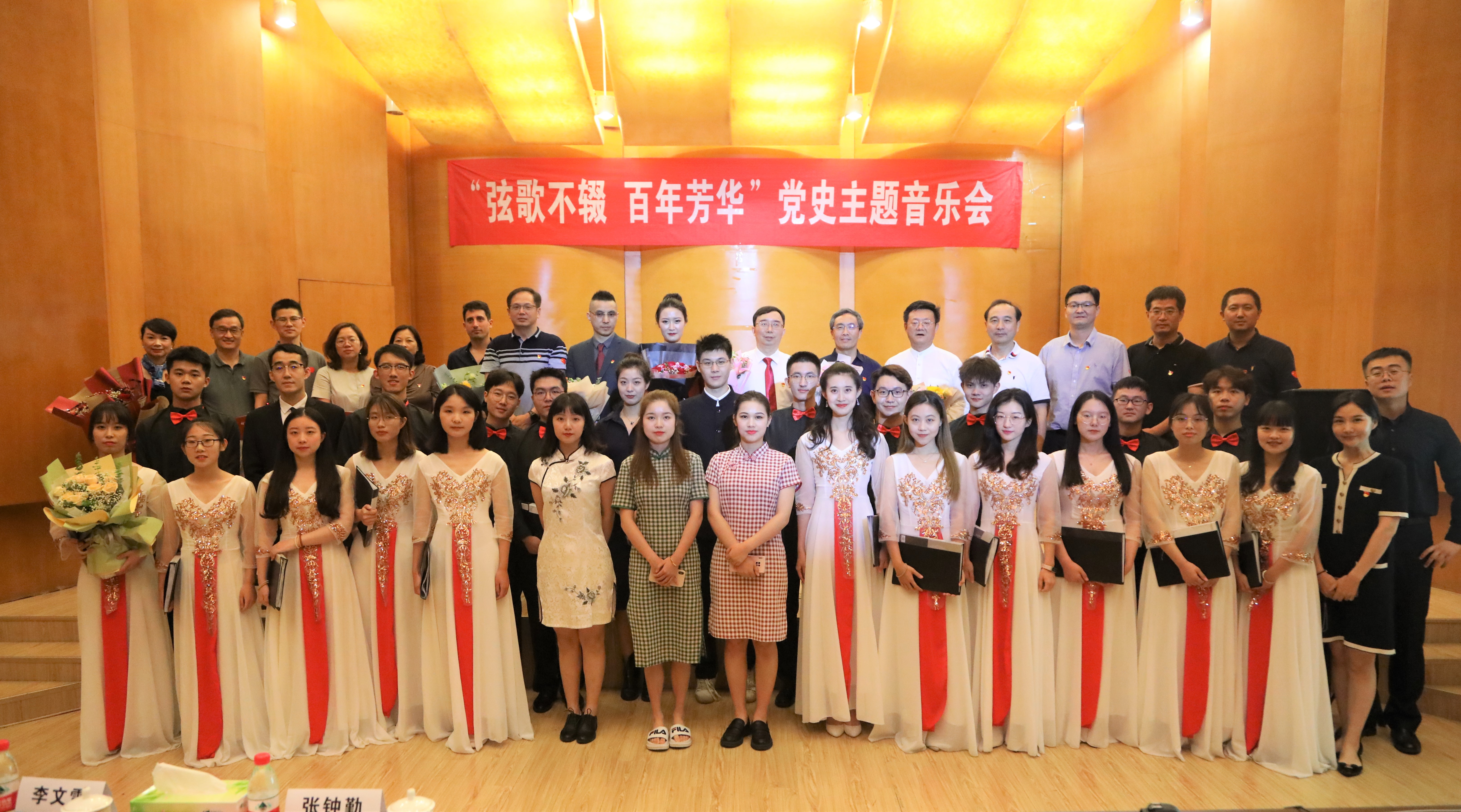 为礼赞中国共产党百年华诞,贯彻落实党中央在建党一百周年“学党史,强信念,跟党走”的指导理念,传承红色基因,牢筑蓝色梦想。6月18日晚19:00,由校党委宣传部、校党委研工部/研究生院主办,国产传媒 、艺术学院联合承办的“弦歌不辍•百年芳华”党史主题音乐会在将军路校区东区音乐厅举办。国产传媒 党委常委、副校长姜斌、校人事处处长、高级人才办主任崔海涛、校组织部副部长、统战部副部长胡苹、校研工部部长、研究生院副院长张启钱及国产传媒 、艺术学院领导和一百余名师生参加音乐会。音乐会现场氛围热烈,座无虚席。