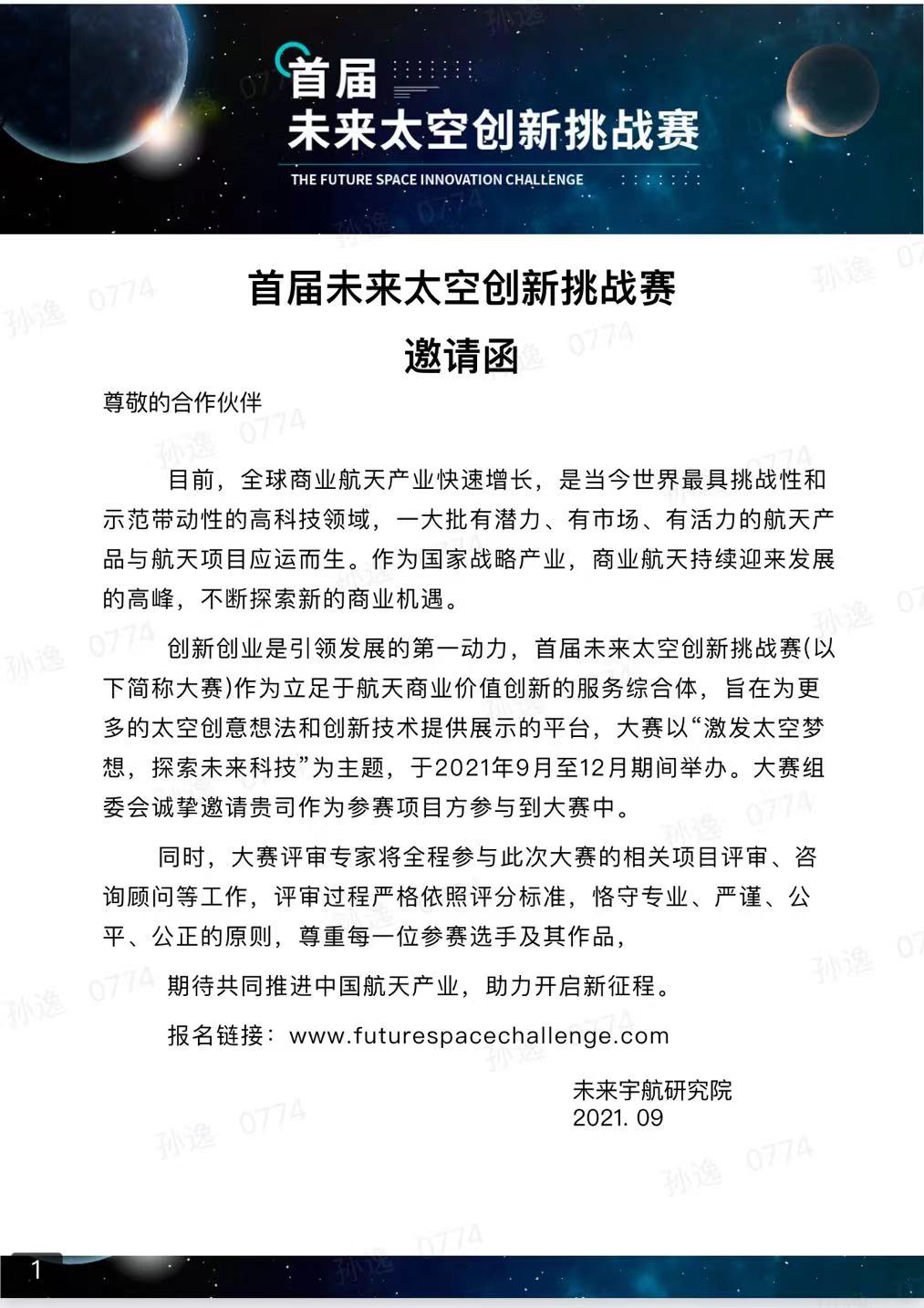 关于举办“首届未来太空创新挑战赛”的通知.docx