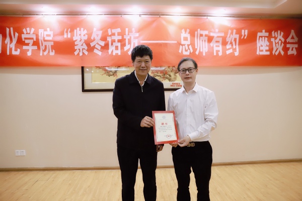 陈谋从学院师资力量、学科分布、科研方向等方面作学院情况介绍,阐述了学院各方面的优势及合作基础,表达了对双方加强合作、共同发展的殷殷期望。