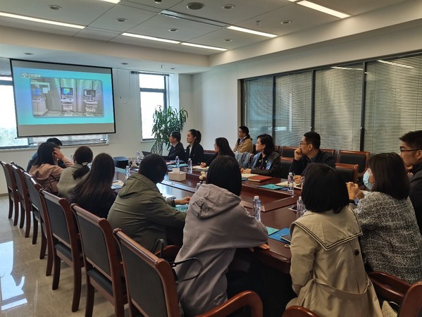 南京生命源医药实业有限公司党支部书记倪轲娜首先给大家介绍了党支部的情况,并对公司的组成、开发项目进行了相关讲解,然后对公司核心项目“手术荧光影像系统”进行了详细的展示。