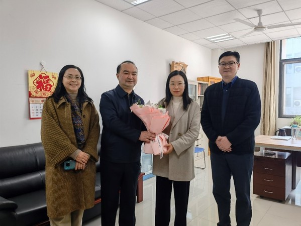 为庆祝第112个 “三八”国际劳动妇女节,进一步激励广大女教职工岗位建功,营造尊重、关爱女性的良好校园氛围, 2022年3月7日,校党委副书记陶勇莅临国产传媒 慰问首届“南航巾帼十杰”冒泽慧老师,校工会副主席余春玲、国产传媒 党委书记李文雷陪同慰问。