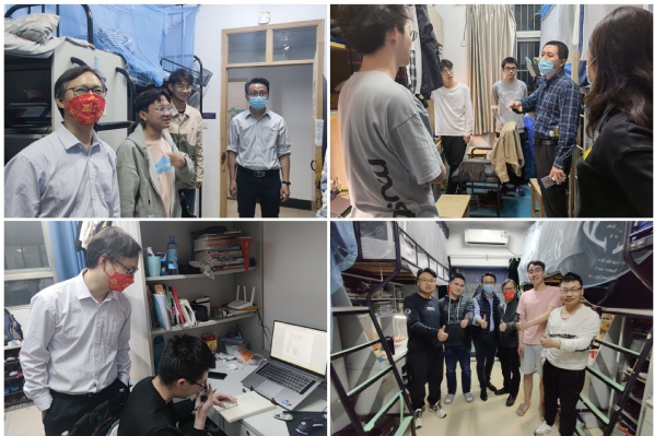 每天白天,学院领导们深入学生实验室,关心同学们的科研学习情况、检查实验室安全,解答学生们的困难问题。