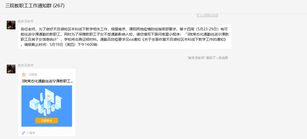 自接到教务处关于5月16日起恢复天目湖校区线下教学的通知后,自动化学院第一时间与各任课老师取得联系,根据学校及属地的防疫政策要求,提前办好入校手续,老师们也积极筹备,提前与学生联系,了解学生的学习进度情况和疑难问题,确保线下教学顺利开展。