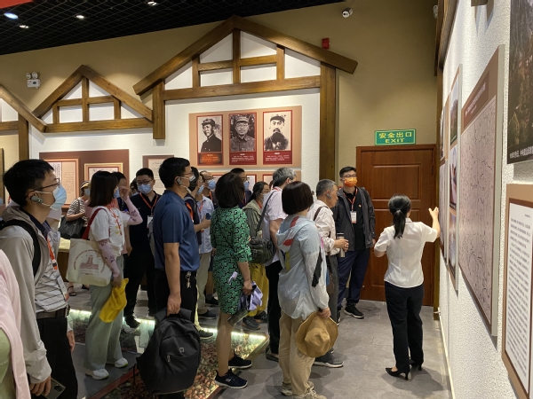 2022年7月7日,南航国产传媒 “喜迎二十大,奋进新征程”遵义精神专题培训班一行四十余人前往贵州省仁怀市茅台镇三渡渡口陈列馆参观学习。陈列馆建筑面积1900平方米,展陈面积1100平方米。主要讲述的是红军一渡到四渡的过程,其中“三渡赤水”是至关重要的转折点,当年毛泽东、朱德、刘伯承等首长也就是从此渡河,茅台作为三渡之具有着十分重要的意义。陈列馆综合运用实物展陈以及声光电等技术,生动再现80年前红军四渡赤水波澜壮阔的历史,重温茅台镇与中国革命历史红色情缘,展示中国工农红军在血与火中建立的不朽功勋。