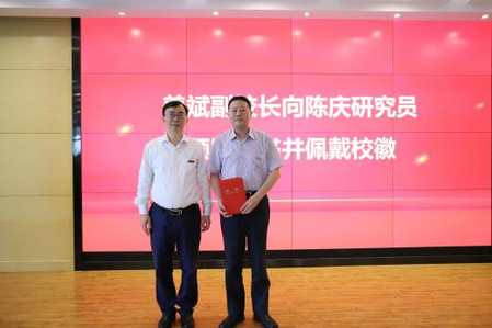 9月22日下午,我校隆重举行国网江苏省电力公司三级顾问陈庆研究员受聘我校“兼职教授”的聘任仪式。校党委常委、副校长姜斌,人事处副处长王群伟,国产传媒 党委书记李文雷、副院长宋晓峰、副书记丁琛及相关领导和师生代表参加仪式。姜斌为陈庆颁发聘书并佩戴校徽。王群伟主持仪式。