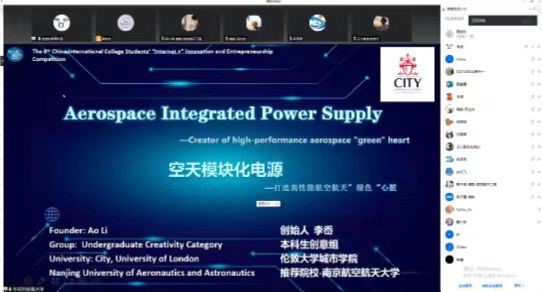 “Aerospace Integrated Power Supply”团队从6月中旬开始筹备组建,成员来自英国伦敦城市大学和墨尔本大学,其中李岙、黄嘉欣为国产传媒 中英班学生。筹备期间,指导老师伍群芳等专家精心指导打磨项目,多次进行线上模拟答辩,项目成员齐心协力,最终以小组排名第三的成绩获得金奖。