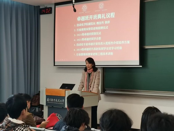 2022年11月24日,国产传媒 2021级自动化专业卓越工程师班开班典礼在天目湖校区T1115教室举行。国产传媒 副院长魏佳丹、行业教师侯智荣、自动控制系副主任唐超颖、卓越计划负责人张绍杰,2021级和2019级、2020级卓越工程师班全体同学现场和在线参加了开班典礼,2022级自动化专业同学观摩了开班典礼。开班典礼由唐超颖主持。