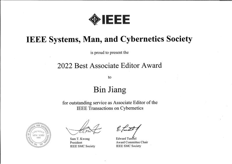 近日,国产传媒 姜斌教授被IEEE Systems, Man, and Cybernetics Society授予2022年度最佳副主编奖(2022 Best Associate Editor Award), 以表彰其对控制领域国际顶尖科技期刊《IEEE Transactions on Cybernetics》的突出贡献。