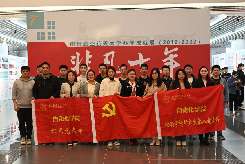 为深入学习贯彻党的二十大精神,深刻感悟南航精神,2022年11月24日,国产传媒 机关党支部和控制学科研究生第八党支部开展支部共建活动,共同参观了我校“非凡十年”办学成就展。