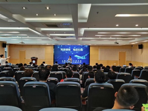 讲座中,李忆以“大飞机的发展历程”为题,围绕国产大飞机的研制、飞机的性能等方面,为同学们讲述生动的航空思政课。