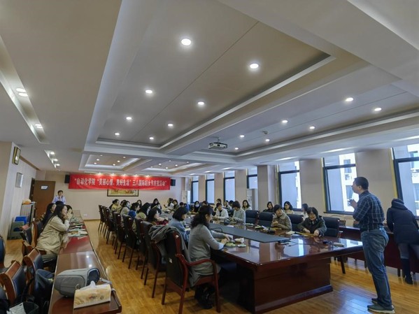 3月6日,巧手慧心,手工编织。活动正式开始前,国产传媒 党委副书记丁琛代表学院为大家送上节日的祝福,感谢女教职工们一年来在教学、科研等方面付出的辛苦和努力,同时希望女教师们在今后的日子里过的舒心、安心、美丽,以更好的精神面貌为学校、学院的建设和发展贡献自己的力量。
