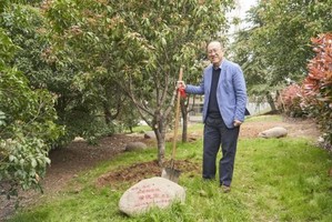 来校期间,管晓宏院士还到“院士林”进行培土活动。