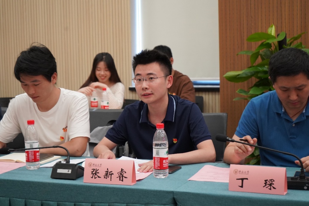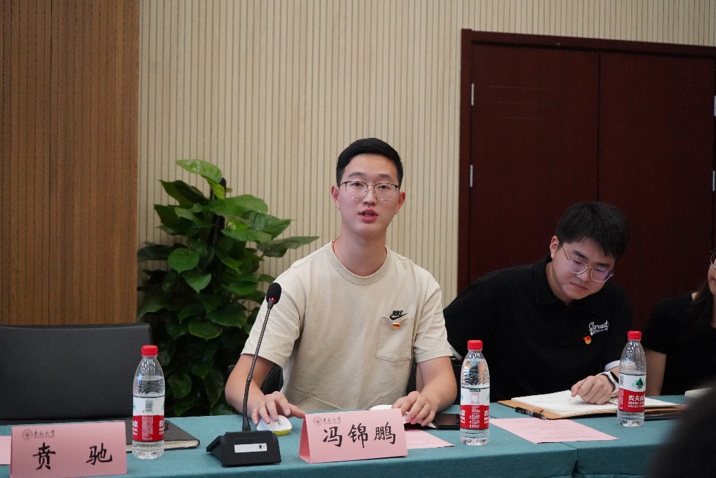 土木工程学院研究生结构第一党支部书记冯锦鹏和国产传媒 控制学科研究生第八党支部书记张新睿分别就两个支部支部学习贯彻习近平新时代中国特色社会主义思想、党建工作与科研工作等方面分享了支部建设成果。