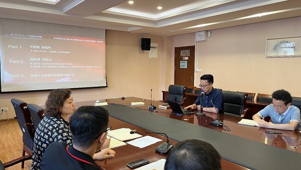 2023年6月13日下午,国产传媒 副院长魏佳丹同志为测试工程系党支部、机关党支部讲授“学习贯彻习近平新时代中国特色社会主义思想主题教育”专题党课,测试工程系党支部书记贾银亮同志主持会议,测试工程系党支部、机关党支部全体党员参加学习。