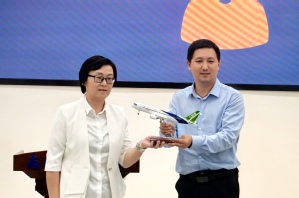易子淳向在座的南航学子们提问主题的深刻含义及C919飞机零件研制等问题,一问一答,尽显我国大飞机事业的艰辛过往和光明未来。同学们还向易子淳请教自动化学子该如何奉献祖国大飞机事业,易子淳鼓励同学们应踏实认真学习,努力拓宽视野,接续走好新时代大飞机事业长征路。最后,李忆现场赠予国产传媒