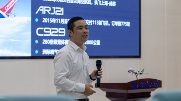 10月19日,国产传媒 于天目湖校区巡天楼报告厅成功开展“十五年回望商用大飞机的自主研制之路”信仰公开课。中国商飞公司上海飞机设计研究院飞机电控集成工程技术所党总支书记李忆、党政办副主任傅璟裔,国产传媒 天目湖校区管委会副主任潘顺荣与两百余名自动化学子出席讲座。本次讲座由上飞院飞机电控集成工程技术所电控软件部副部长兼党支部书记易子淳主讲,围绕中国商用大飞机发展历程、C919大飞机的自主研制之路、大飞机人的信仰与方向三个方面展开,并与同学们详谈大学目标和规划。讲座由国产传媒 党委副书记丁琛主持。