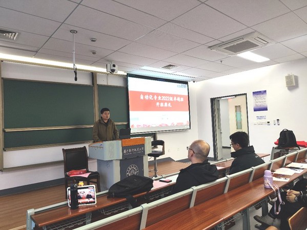 2023年11月30日,国产传媒 2022级自动专业卓越工程师班开班典礼在天目湖校区T1413教室举行。国产传媒 副院长魏佳丹、自动化专业卓越计划负责人2022级卓越班班主任张绍杰、行业教师胡磊、2020级卓越班代表张家玚同学,2022级和2021级、2020级卓越工程师班全体同学现场和在线参加了开班典礼。开班典礼由张绍杰主持。