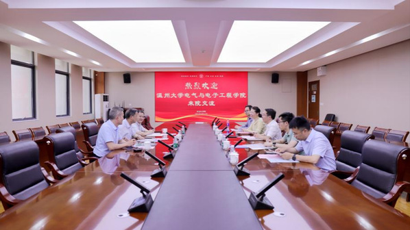 戴瑜兴教授代表温州大学电气与电子工程学院感谢学院的热情接待。他指出,温州大学电气与电子工程学院是从事电气、电子、信息通信、自动化控制等领域教学、科研、人才培养的工科类学院。期待两单位互学互鉴,共同提升学科建设的水平,培养更多高质量的专业人才,推动学术研究和技术创新,探索国家能源结构调整的更多途径,以点带面促进形成能源绿色低碳发展新格局。