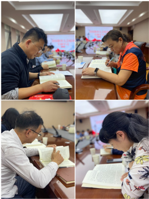 最后,中心组举行了专题读书班,全体与会人员原文研读习近平同志《论教育》。