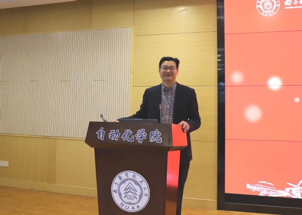 039011班班长林帆作为校友代表发言。林帆对学院的支持表示感谢。他指出,390级南航学子一直秉承着报国初心、弘扬创新精神,敢于突破,创造了诸多成绩,衷心地祝愿母校以后越来越好,母院发展也越来越强。