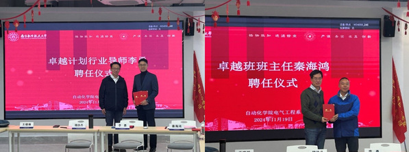 为完善培育机制,体现“卓越计划”的校企合作特色,国产传媒 副院长魏佳丹向阳光电源/储能事业部变流研发中心总监李勇颁发“卓越计划”行业导师聘书,电气工程及其自动化专业负责人王晓琳向电气工程“卓越班”0323208班班主任秦海鸿颁发班主任聘书。