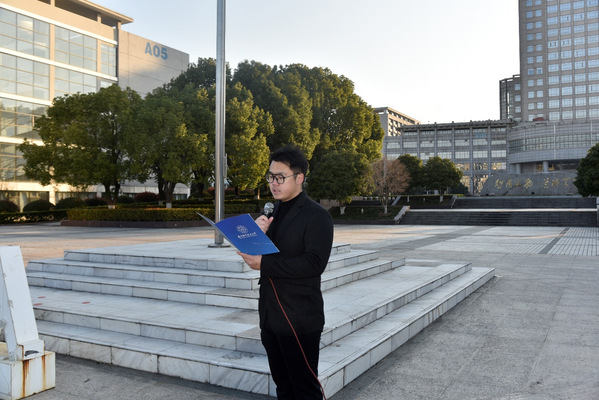 学生党员代表杨宁在国旗下发表题为《科技创新与青年使命:在新时代浪潮中砥砺前行》的演讲。她抓住“高水平科技自立自强”这一两会热议话题,呼吁同学们将个人发展与国家发展同频共振,与时代脉搏紧密相连,并结合专业实际,分析了新形势下的机遇与可能,展现了新时代青年党员的使命与担当。