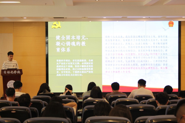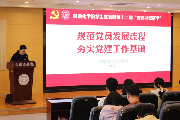 生医学科研究生党支部组织委员覃兵围绕《规范党员发展流程,夯实党建工作基础》主题进行领学。他结合支部工作实际详细介绍了学生党员发展的具体流程和注意事项,为国产传媒 2025年春季学生党员发展工作奠定扎实的基础。