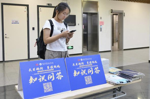 为进一步增强观展过程中的参与感和教育性,展览特别设置了“抗战胜利80周年主题知识竞答”互动区。题目涵盖抗战历史、军事科技发展、国防政策等内容,参与者通过扫码答题,不仅巩固了观展所学,更在跨越时空的回答中与历史对话。这种“以答促学、以学促思”的方式极大激发了大家对历史和科技的兴趣,真正实现了“寓教于展”。